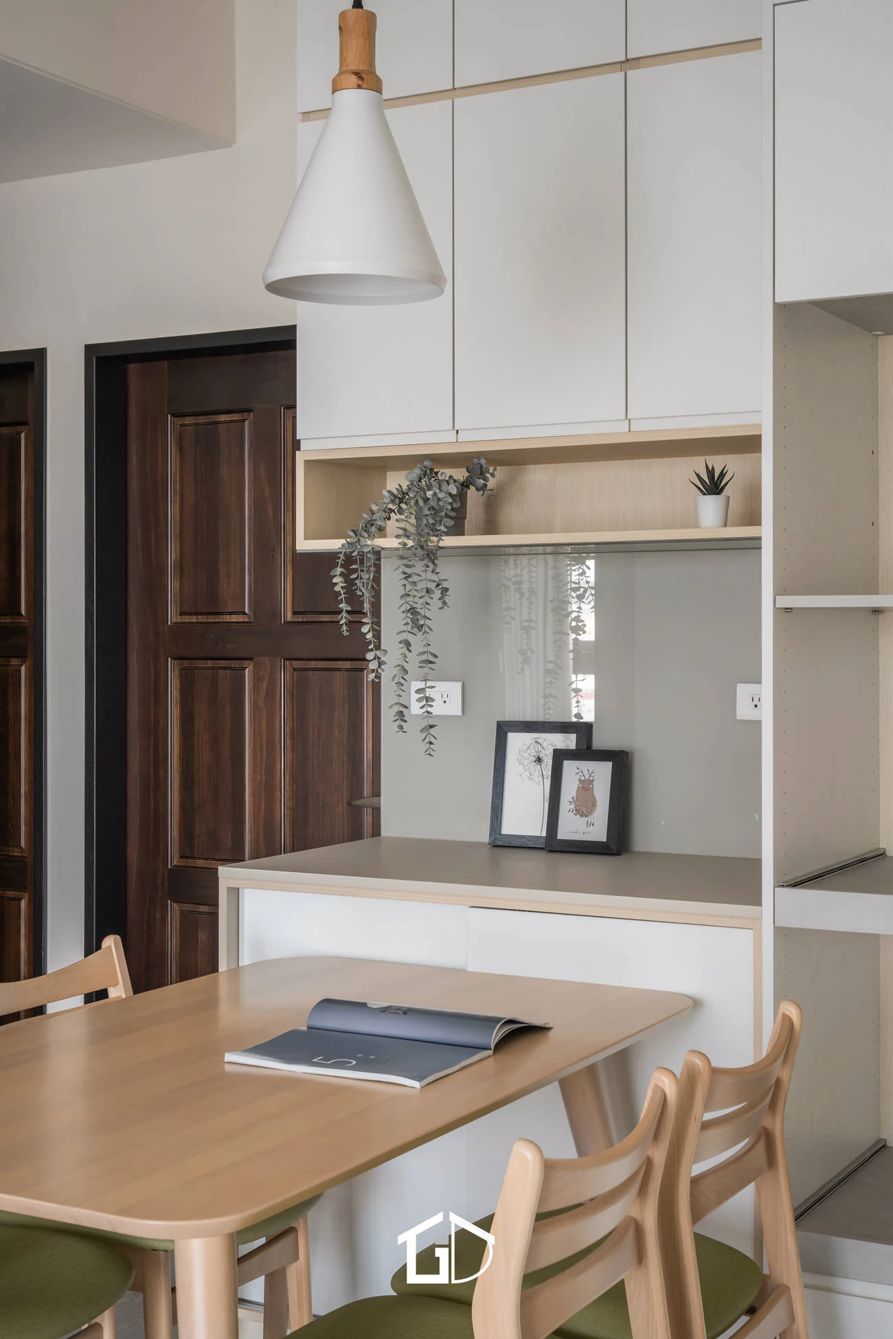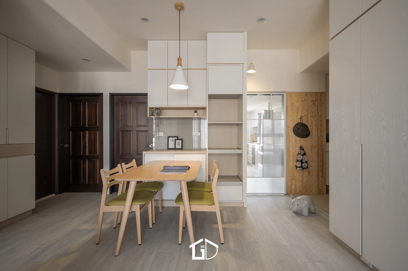 客餐廳選擇去除格局界線,創造開闊明亮的空間視覺感,也凝聚家人間的距離,低飽和色系間,充滿靜謐柔情的氣息,享受光渲染出的幸福,每個片刻都值得永存。