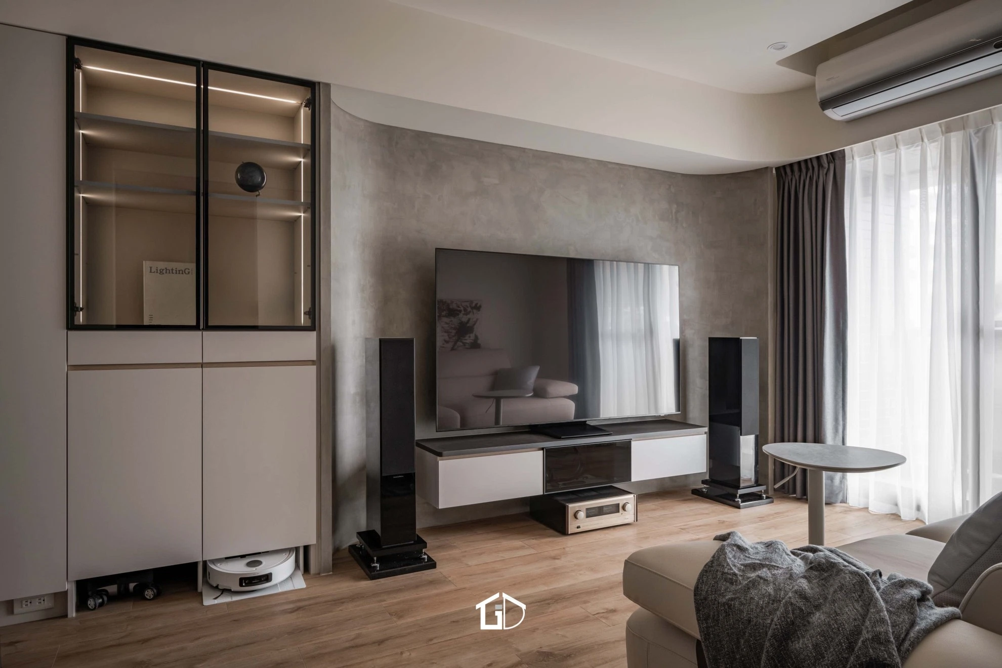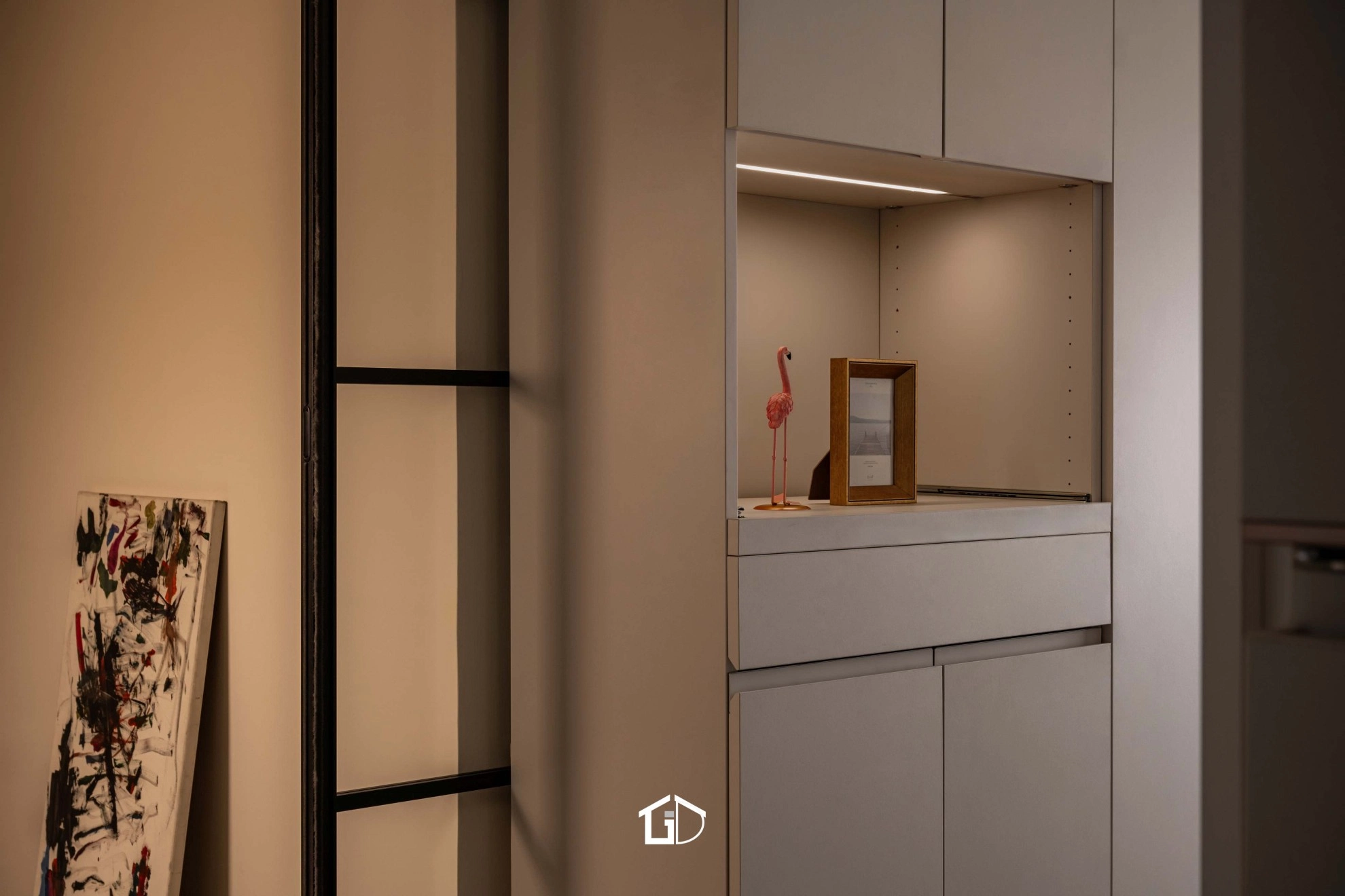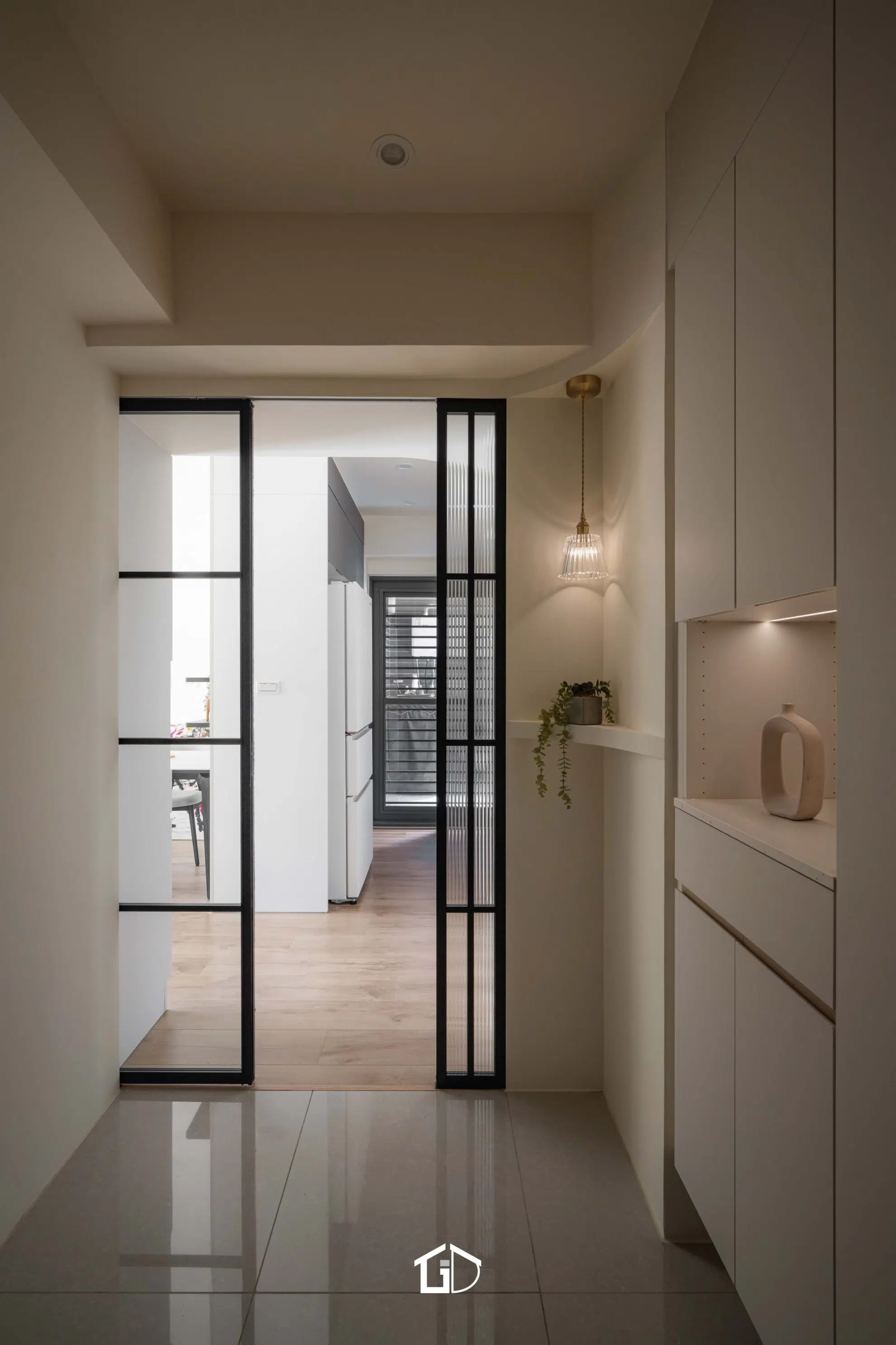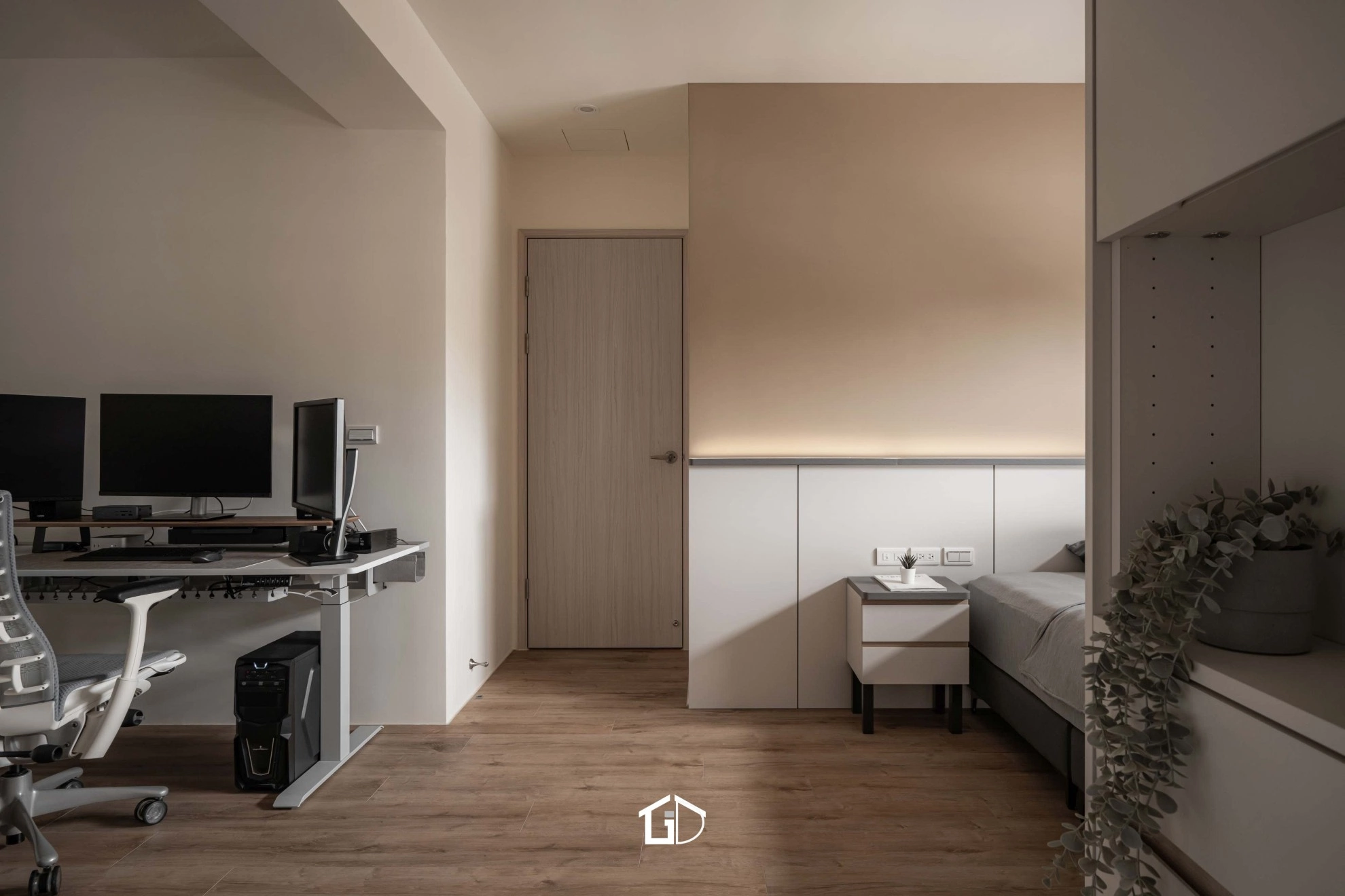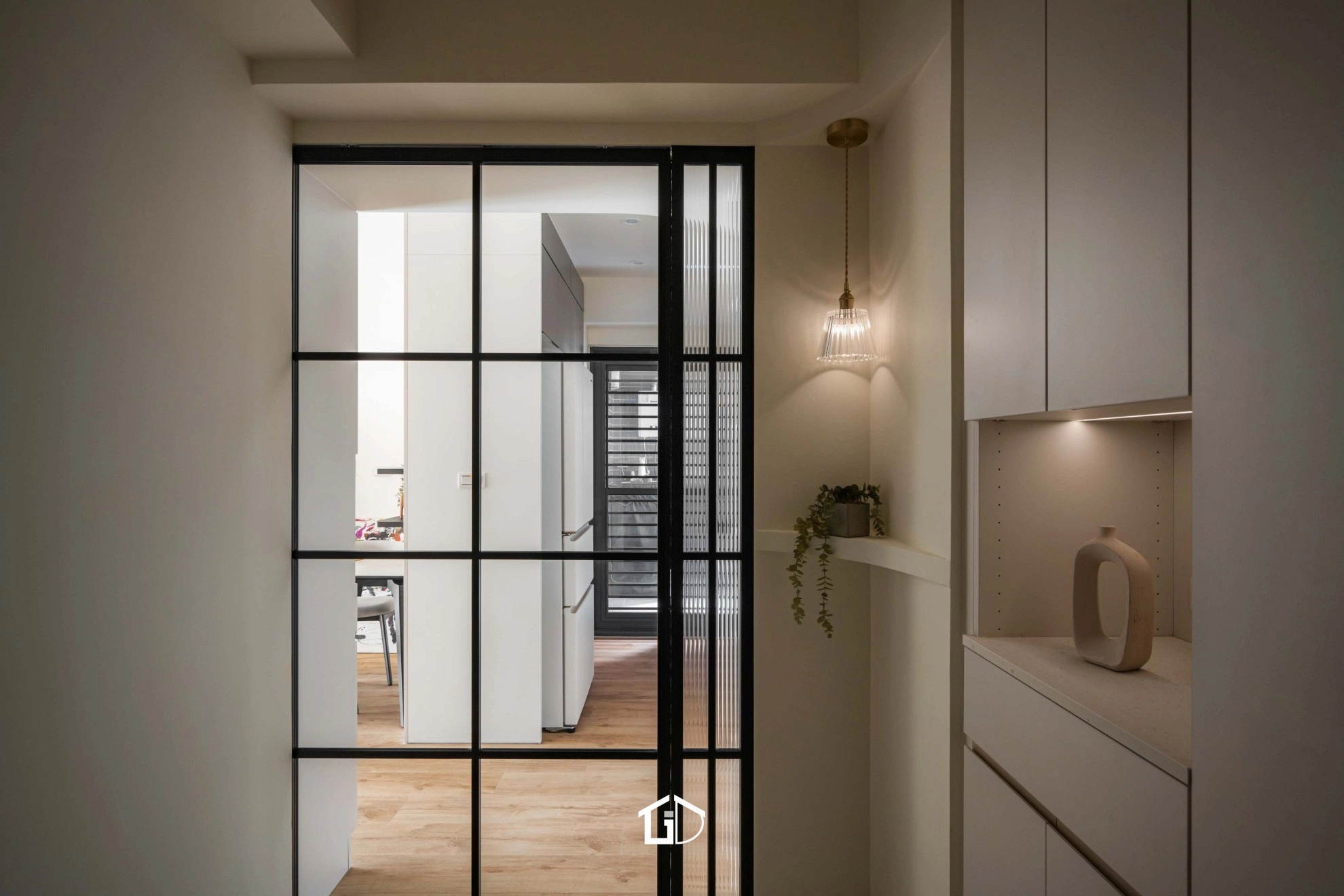 ● 主要建材:鋁框門、系統櫃、木地板、鋁槽燈、藝術塗料