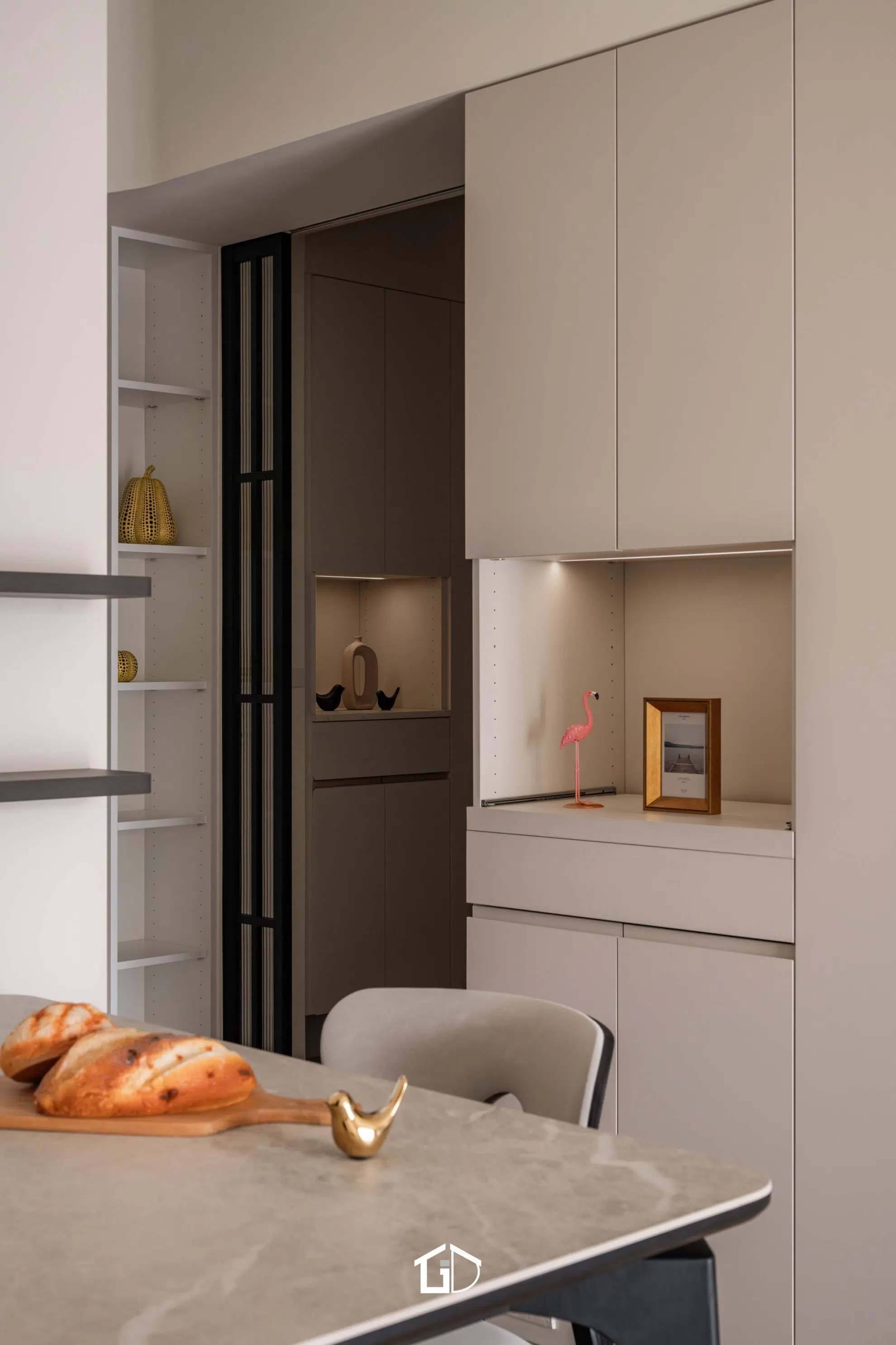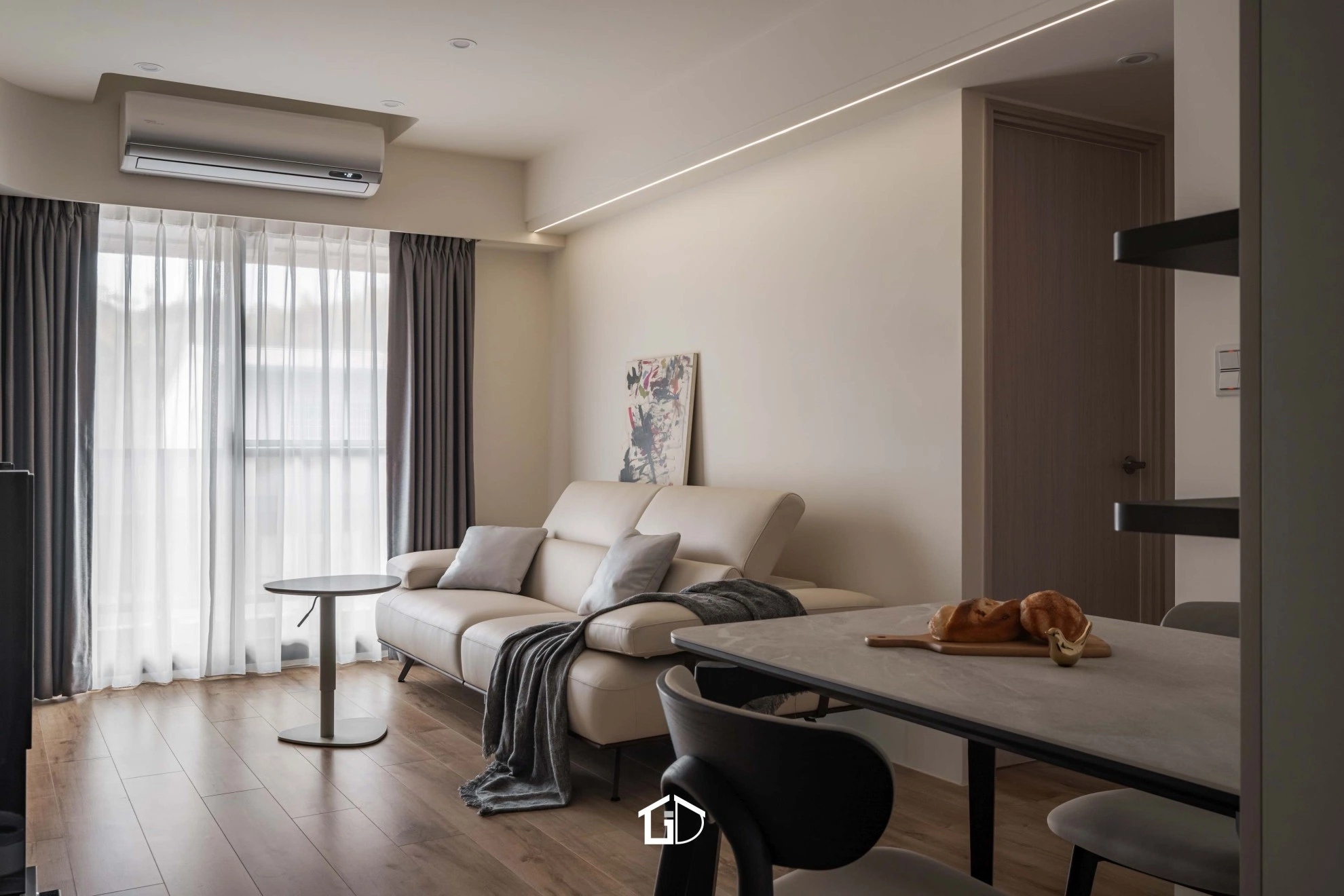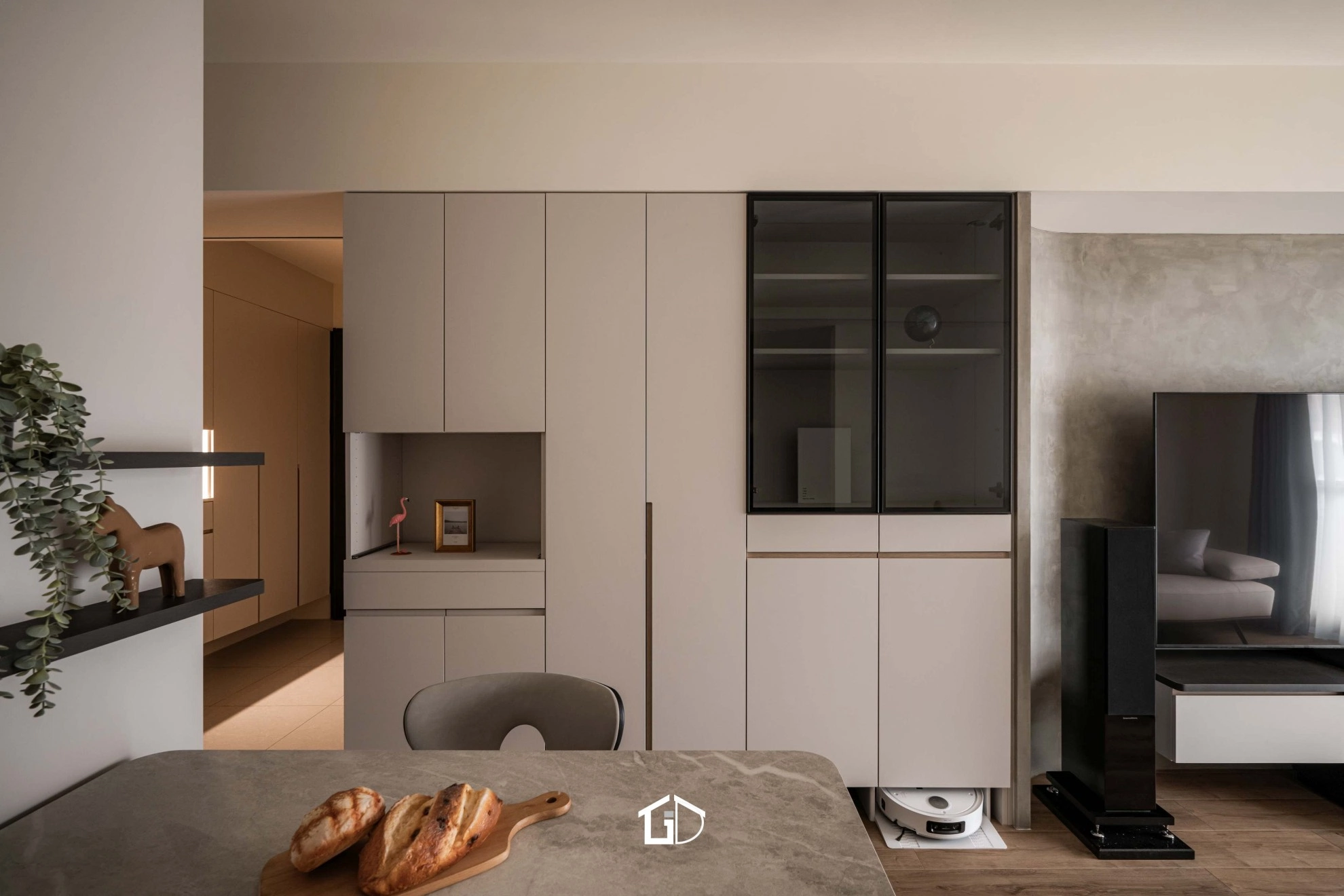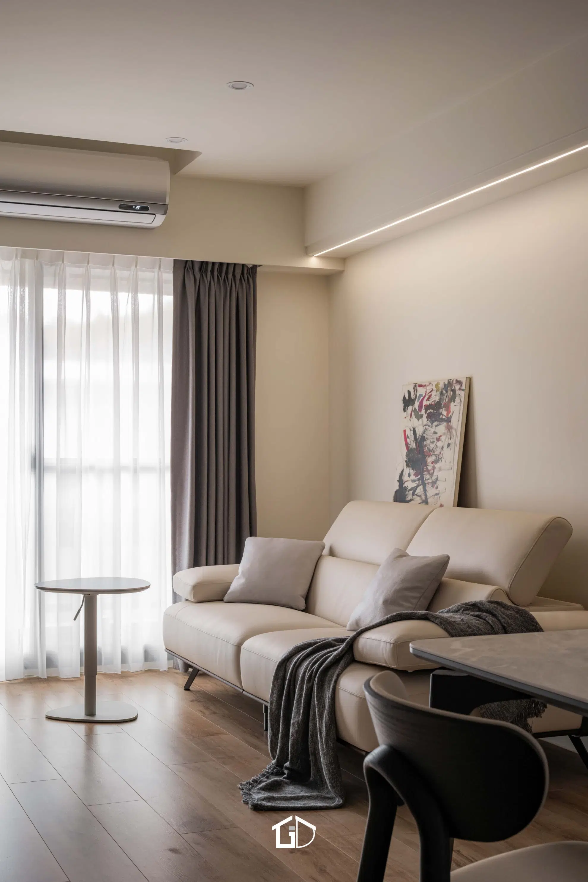 靜謐的米色基調,揉合微水泥牆與木質地坪,為日常添上純粹質感。空間在簡約與機能中取得平衡,如一隻歸巢的鳥,停棲於溫柔日光之中,靜享無聲的寧靜之境。