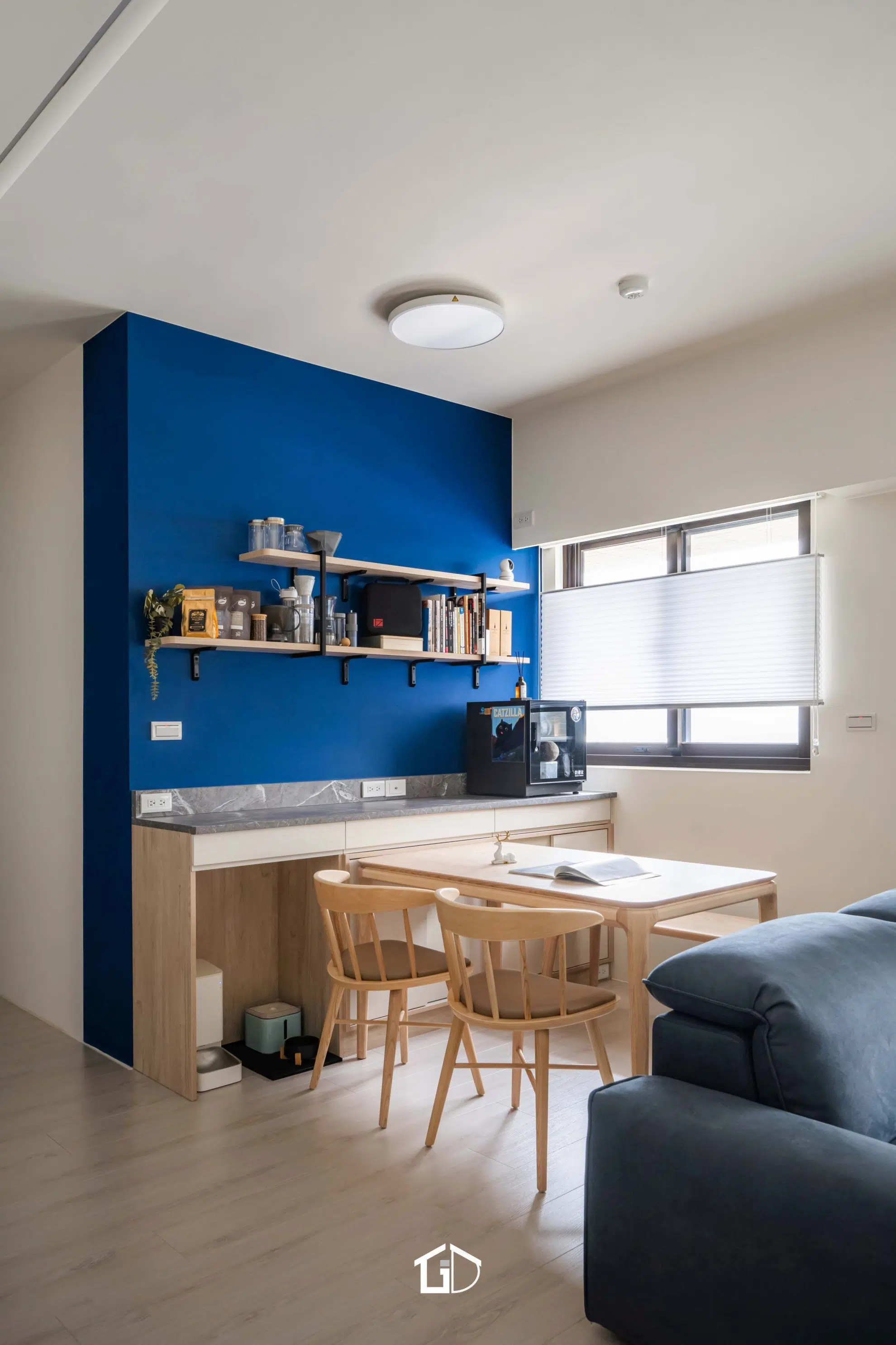 沉著的靛藍,靜靜潤染一隅,如清晨未散的山嵐,在空間中悄然鋪展。