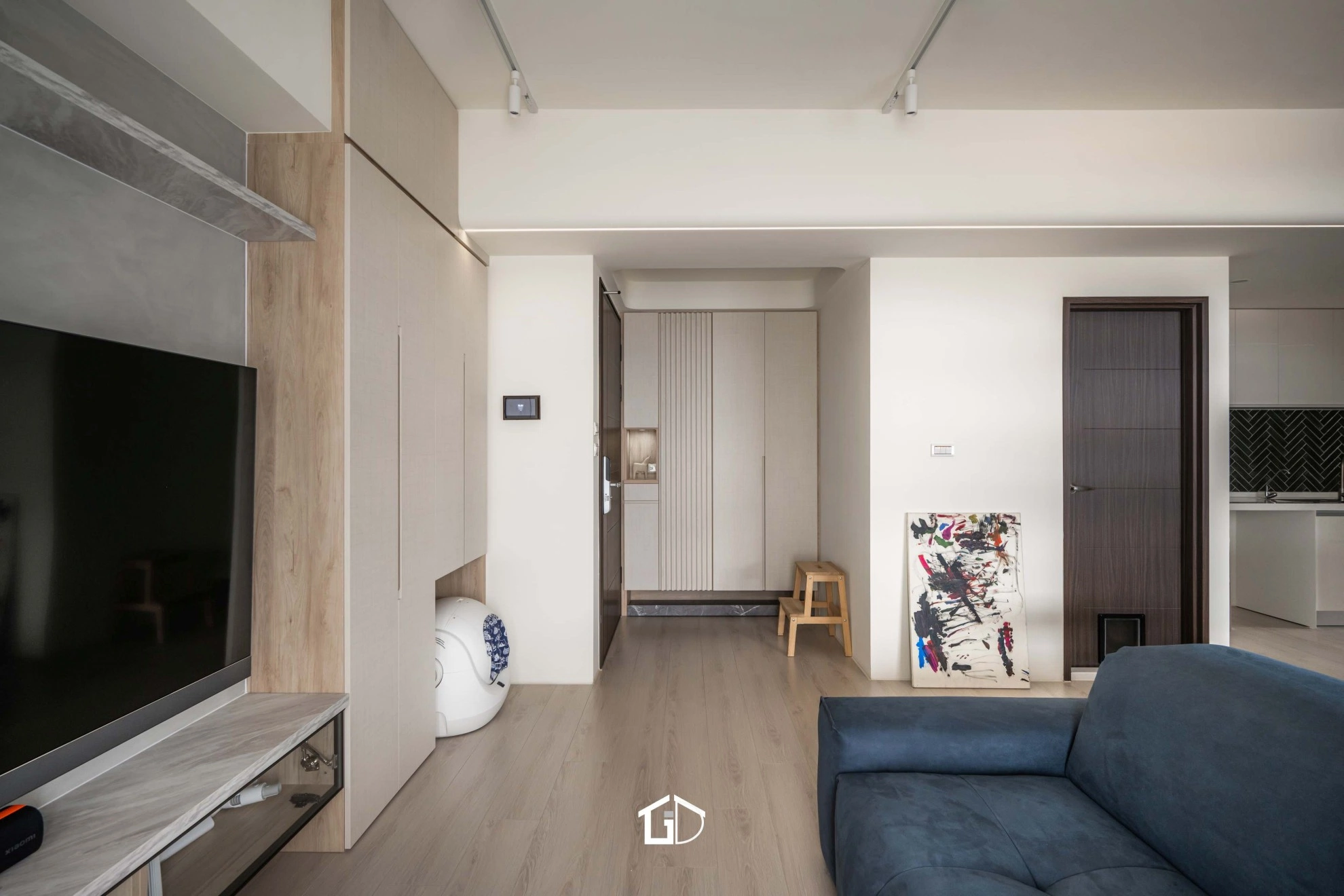 木質肌理沿著地坪、家具緩緩蔓延,宛如溪流潤物無聲,讓空間顯得沉穩且有呼吸。