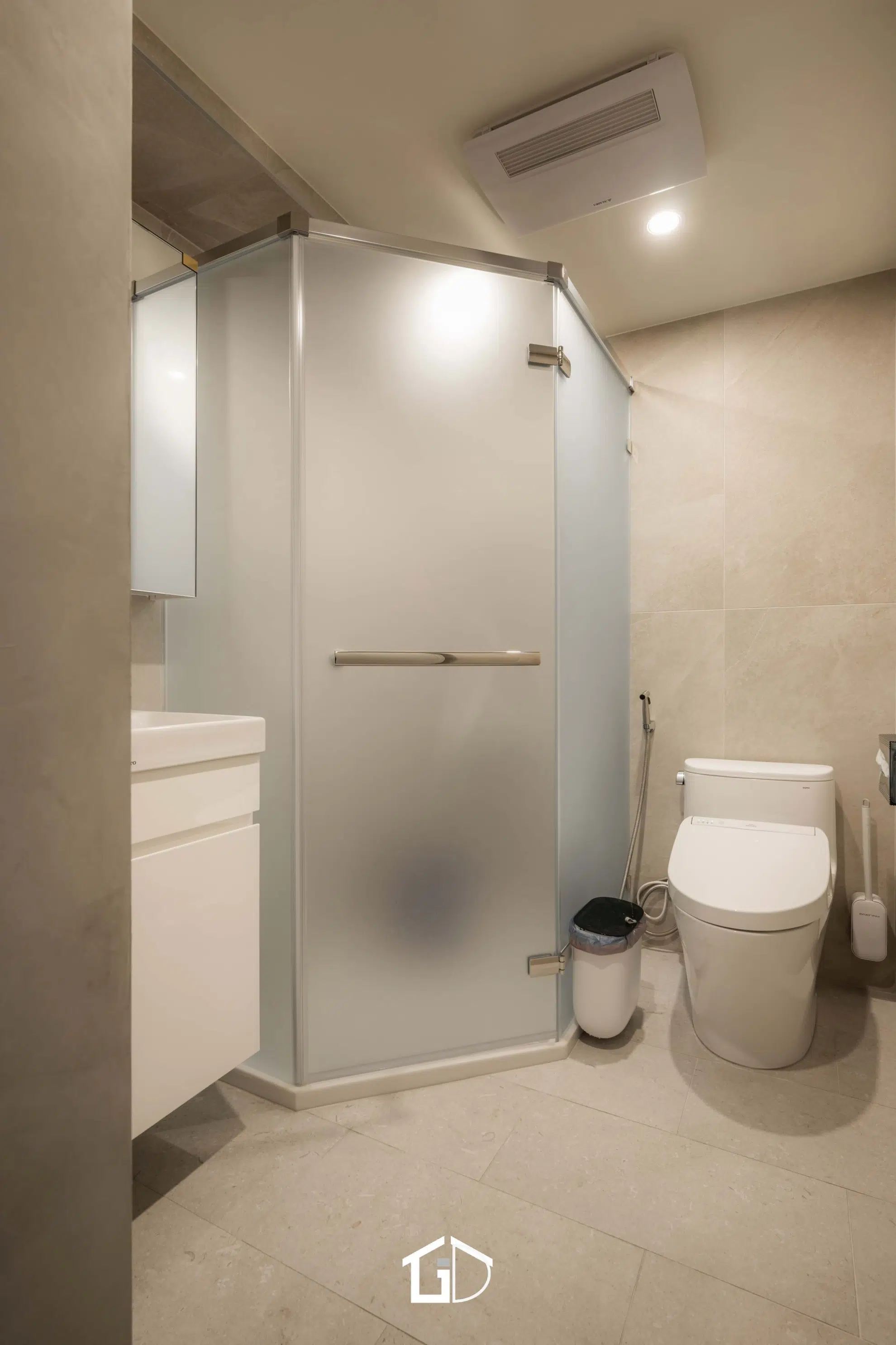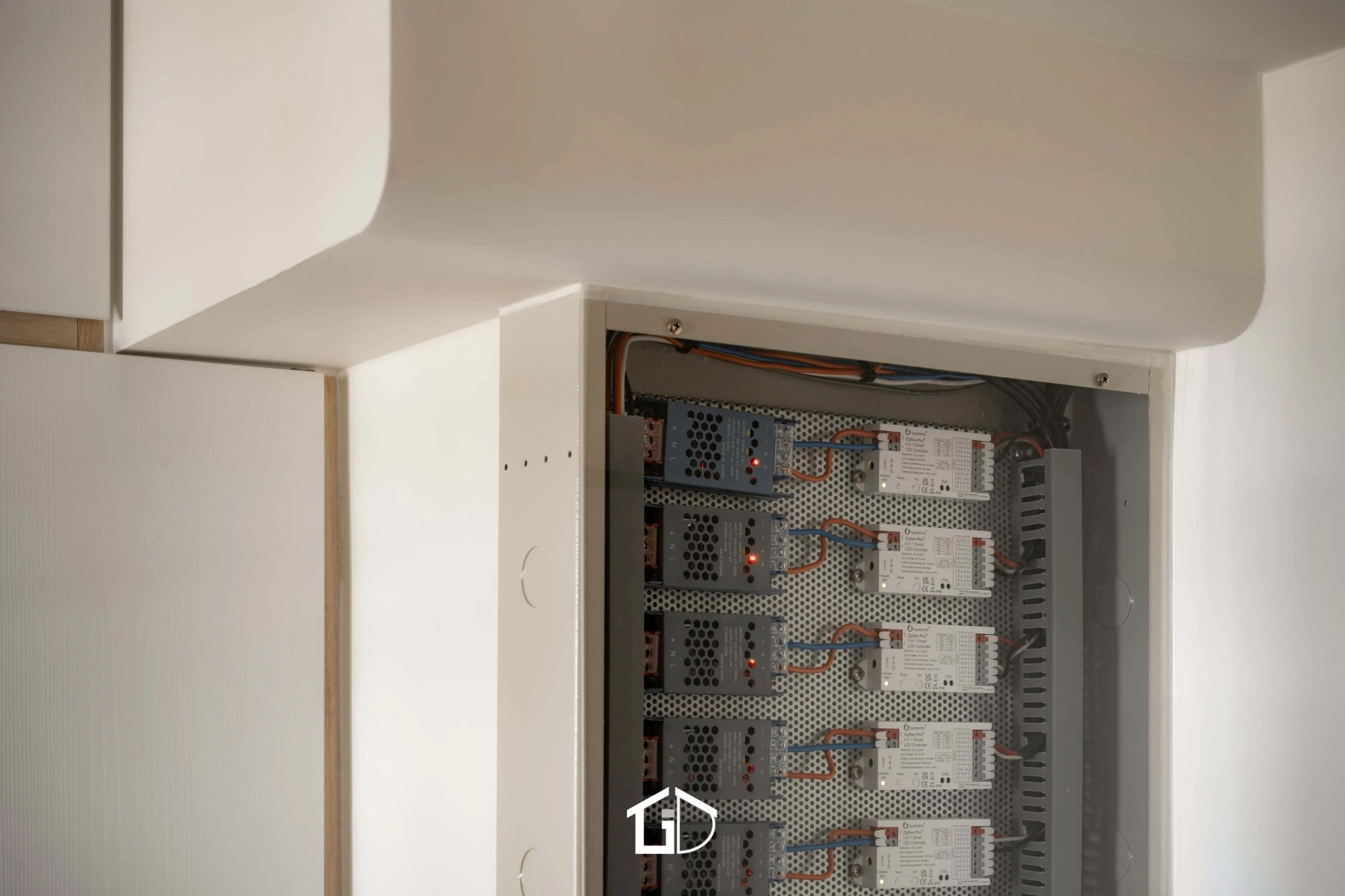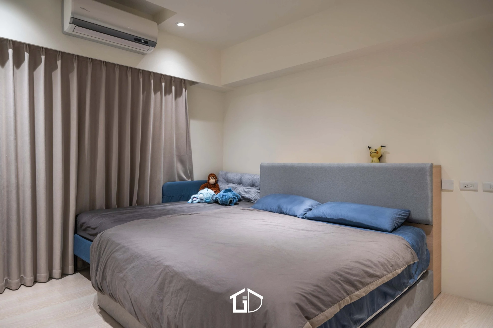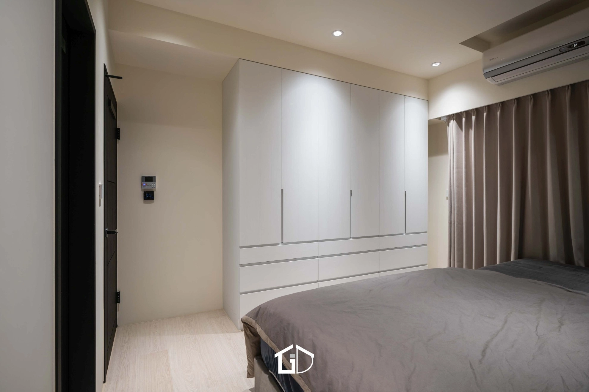 午光和煦,輕柔灑落在淺木與灰沙之間,為這個小宅注入如晨光般的恬靜氣息。電視牆採用柔霧特殊漆質感,搭配鐵件層架與玻璃櫃體,讓展示與收納自然交織,不顯壓迫。整體以低彩溫潤色階鋪陳,灰米色沙發、裸木色家具與奶油白收納系統,映出北歐簡約而溫柔的生活軌跡。窗邊小圓几與微型餐桌構成日常的光影座標,細節處處透露「剛剛好」的從容。這是一個為當代小宅量身訂製的靜謐容器,留給居住者更多生活的餘白與心靈的緩衝。